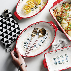 These bakeware from the Cherry Rose Collection has a hand-painted fruity floral detailing with gloss finish. Set with a wave fringe in signature red, these bake dishes are available in classic rectangle or modern oval design.