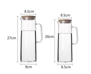 Available in 3 styles and 2 different capacities, these pitchers will be sure to quench your thirst. Made entirely of glass with a sturdy handle and smooth v-edge tip allows for easy pouring without spillage. Choose from a range of of different lid styles - wooden, metal or glass. Lids are secured with an anti-slip fringe which ensures that they don't fall off while you're pouring!