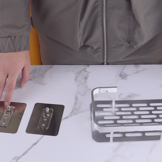 Excellent shelf for the bathroom. Installation is simple: on the wall install adhesive stickers, then unscrew the locks (silver, they are on the stickers), install the shelf, lock them on the wall. It's all set. Installed quickly. Keeps in the shower tightly, immediately put all the shower jars, nothing sagging, does not creak, does not hang out. All tight. I recommend to buy a shelf from this store.