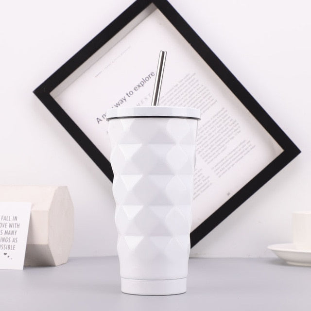 • Suitable for hot and cold beverages and includes a reusable straw