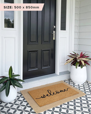 This elegant Welcome doormat design will elevate the look of any entrance. A simply stunning, sustainably made doormat featuring our signature embossed fade-resistant finish.